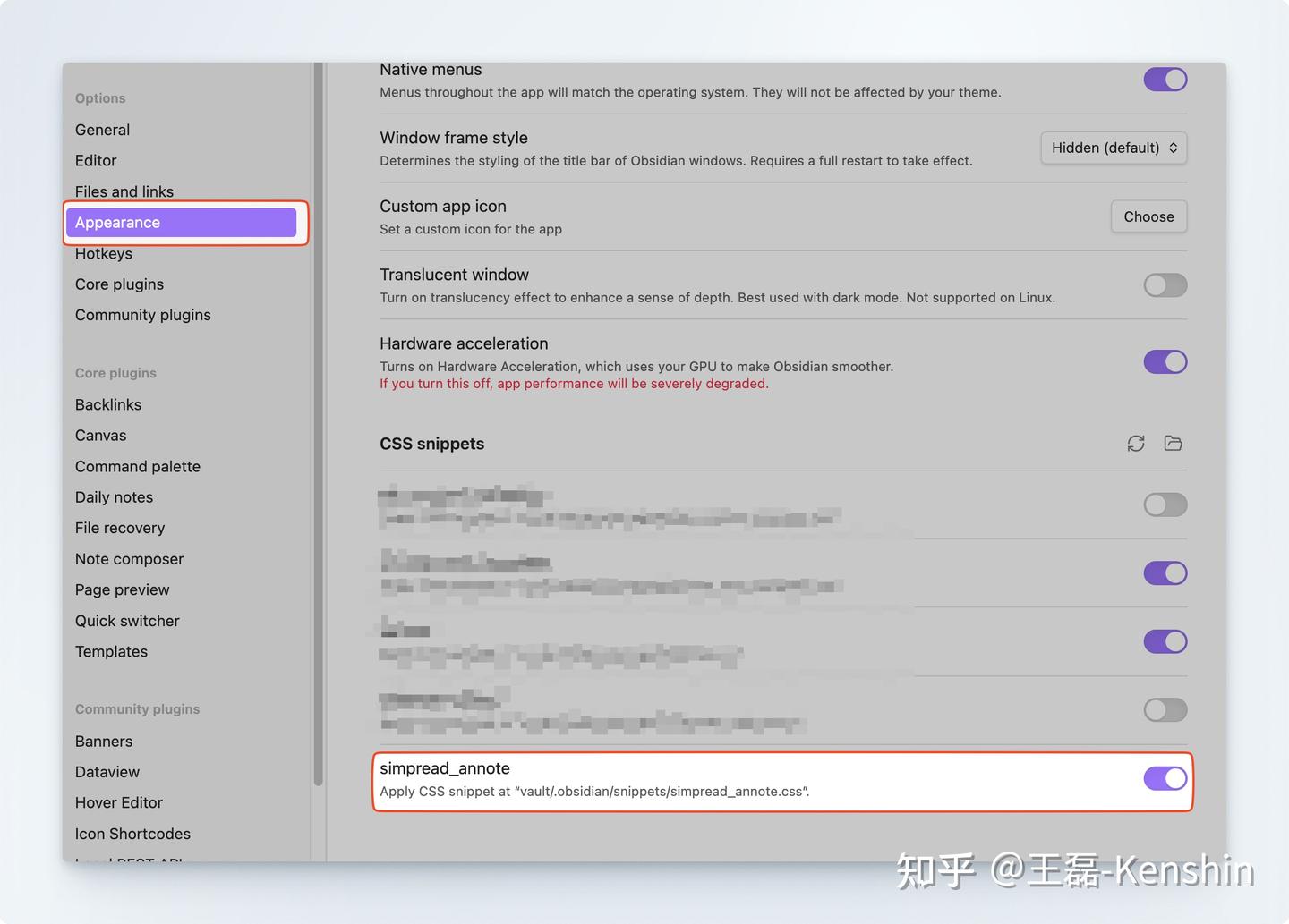 接下来需要将简悦的 CSS 文件放到 Obsidian 自定义 CSS 中