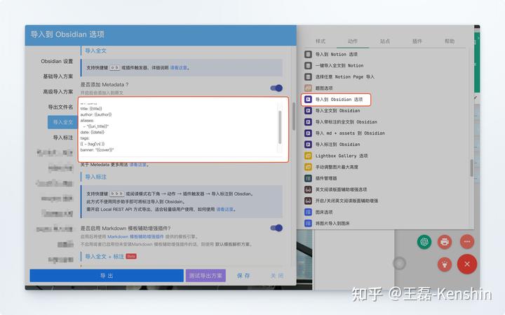 此功能需要跟 导入到 Obsidian 插件 2.0 版配合使用,因此下面的说明涉及到两个插件的设置。
