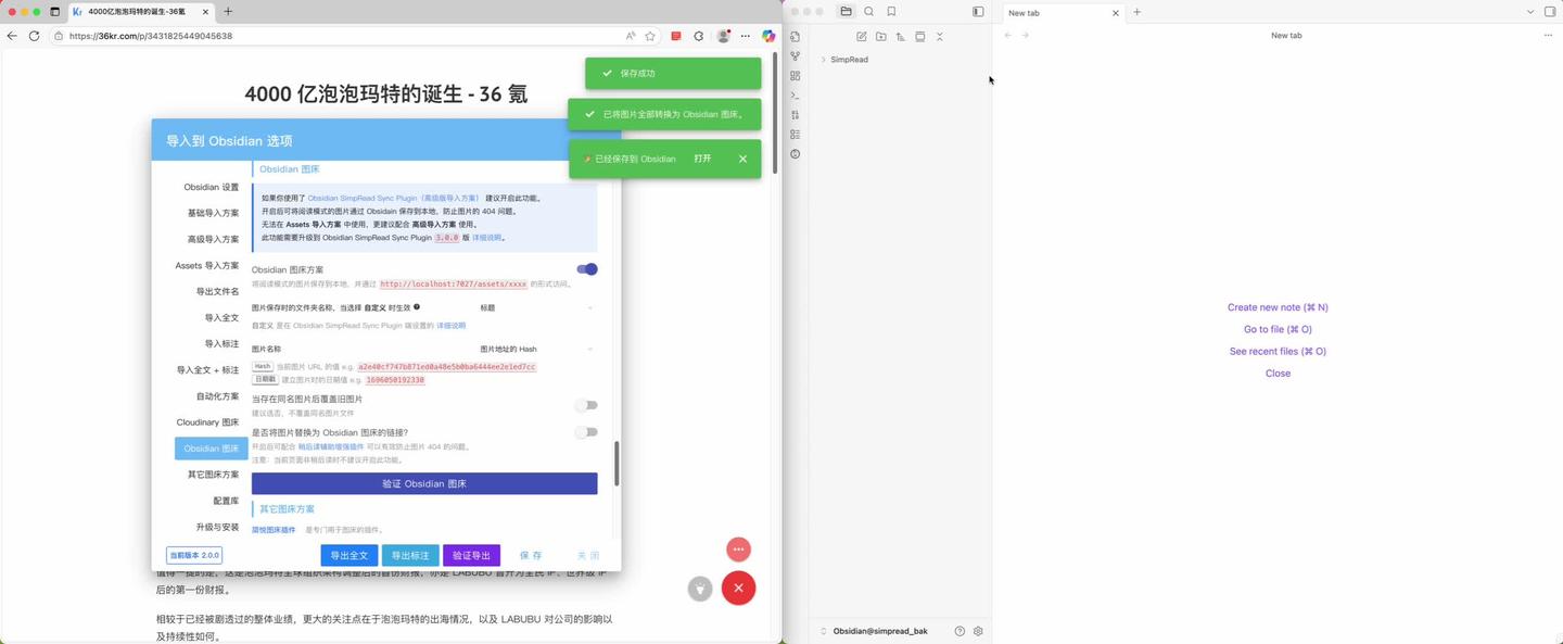 因为无须配置simpread_config.json ,并内置图片本地化功能( Obsidian 图床),所以可直接作为 导入到 Obsidian 的剪藏搭子。