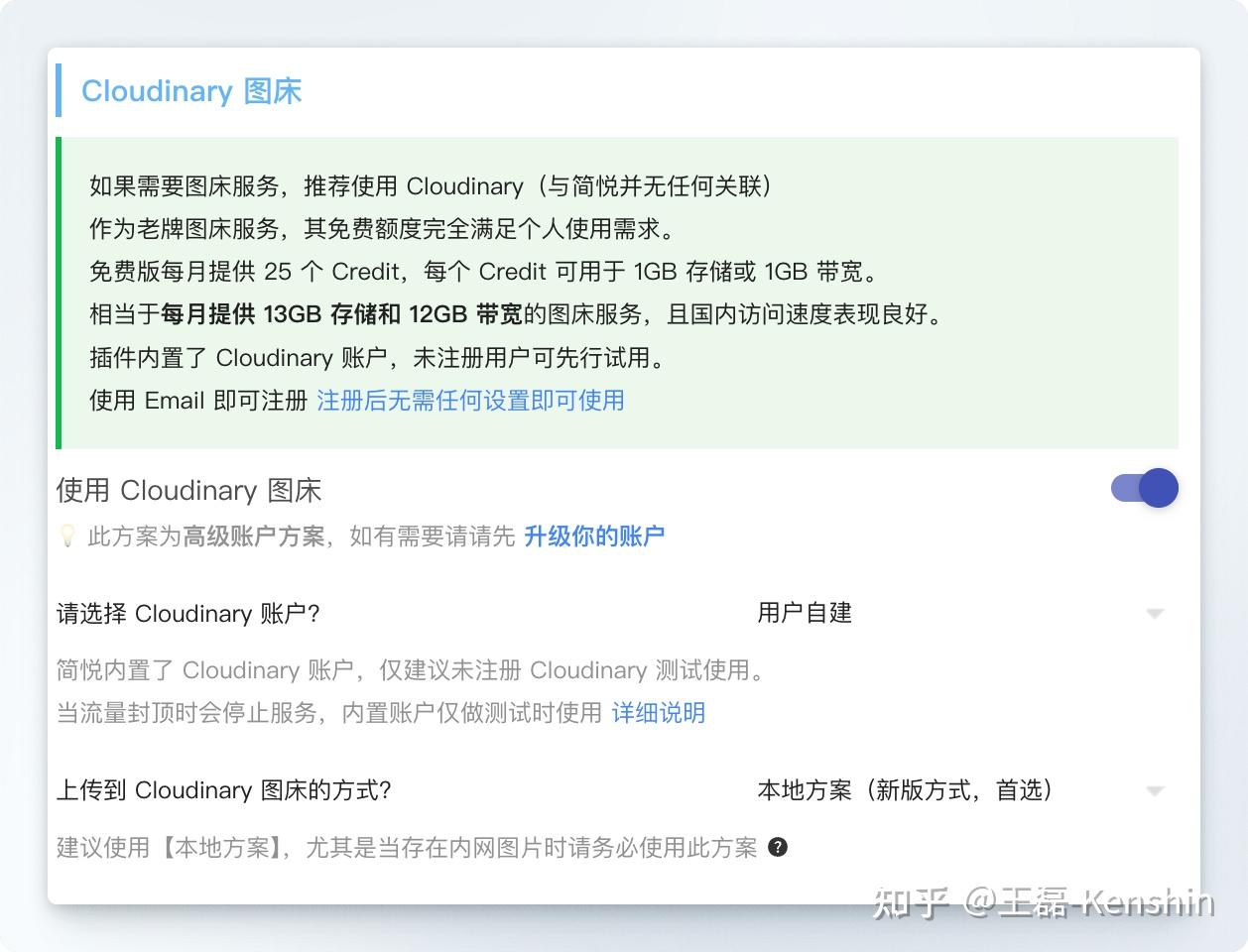 内置 Cloudinary 图床